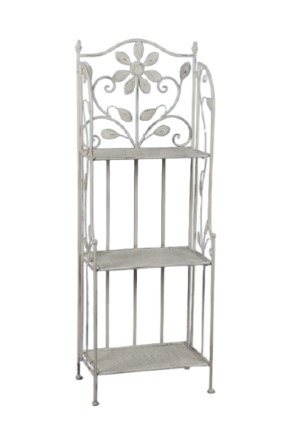 Add charm and function to any space with this elegant 3-shelf steel rack. Designed with a graceful floral motif, this freestanding unit is perfect for organizing and displaying items in kitchens, bathrooms, balconies, or entryways.
