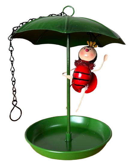 Bring a splash of fun to your garden with this charming ladybird bird feeder! Featuring a green dish and umbrella, it’s designed to attract birds while adding a whimsical, cheerful touch to your outdoor space. Perfect for patios, balconies, or gardens, it’s both functional and delightfully decorative.